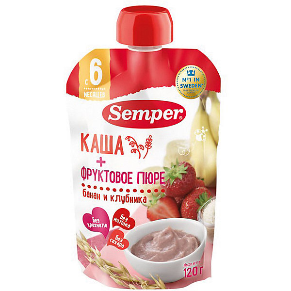 Пюре Semper бананово-клубничное с кашей, с 6 мес, 12 шт