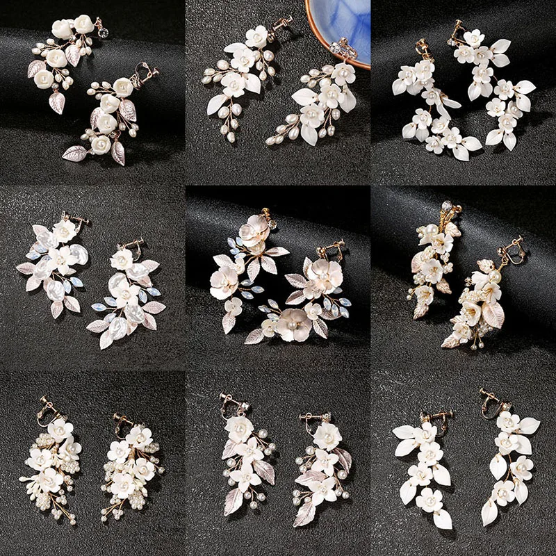 SLBRIDAL Ins Style Sparkling Crystal Rhinestones Porcelain Flower Freshwater Pearls Bridal Wedding Earring Women Gilrs Earrings
