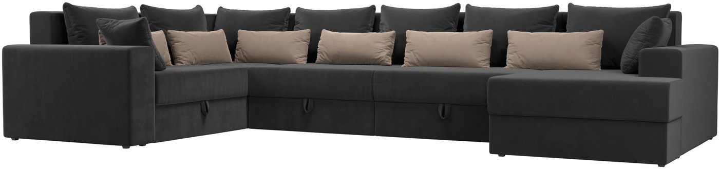 П-образный диван Лига диванов Майами П 93 левый (велюр серый/подушки серые/бежевые)