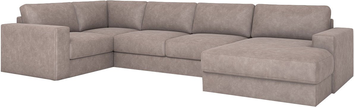 П-образный диван Rivalli Дискавери + оттоманка правая + угловая секция + кресло секц. (Tango Light Beige)