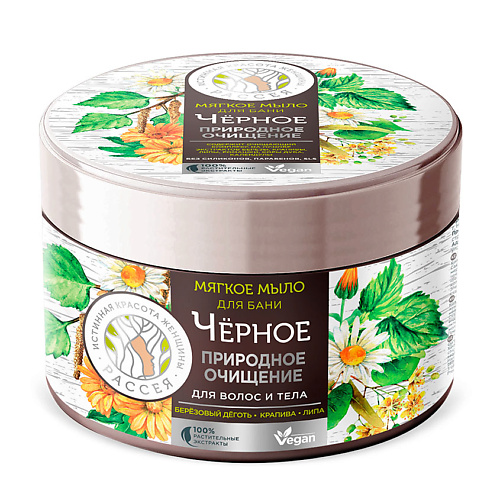 РАССЕЯ Мягкое мыло "Чёрное" для волос и тела, для бани и душа 400.0, Мягкое мыло "Чёрное" для волос и тела, для бани и душа