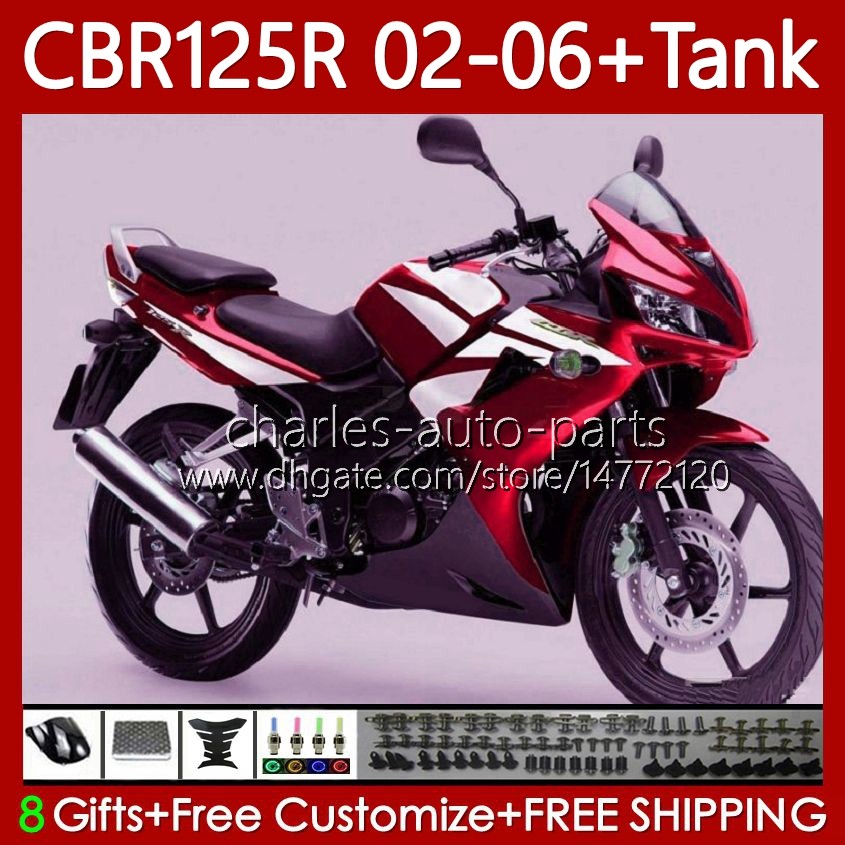 OEM Fairings For HONDA CBR-125 CBR 125 R CC 02-06 Bodywork 124No.126 CBR 125R 125CC CBR125R 2002 2003 White red 2004 05 06 CBR125RR CBR-125R 02 03 04 2005 2006 Body +Tank, No. 1