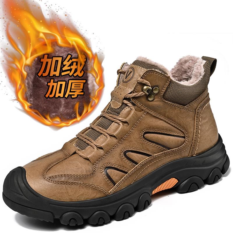 Рабочая обувь мужская 2025 новая зимняя бархатная теплая уличная повседневная обувь средней высоты на мягкой подошве противоскользящая обувь для альпинизма большого размера 46