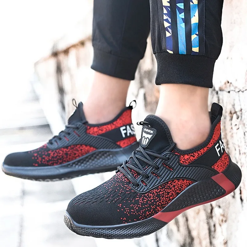 Рабочие ботинки, мужские защитные ботинки со стальным носком, легкие противоударные кроссовки со шнуровкой, мужская спортивная обувь для м...