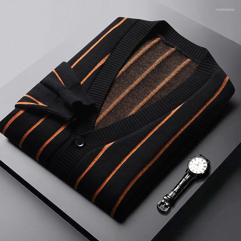 Men's Sweaters Knit Jacket England Style Striped Men Cardigan Fashion Brand Autumn Winter Designer Solid Color Mens, Khaki we8844