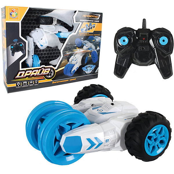 Радиоуправляемая машинка 1toy "Драйв" Трюковой перевёртыш, бело-голубой, Синий/белый, Радиоуправляемая машинка 1toy "Драйв" Трюковой перевёртыш, бело-голубой