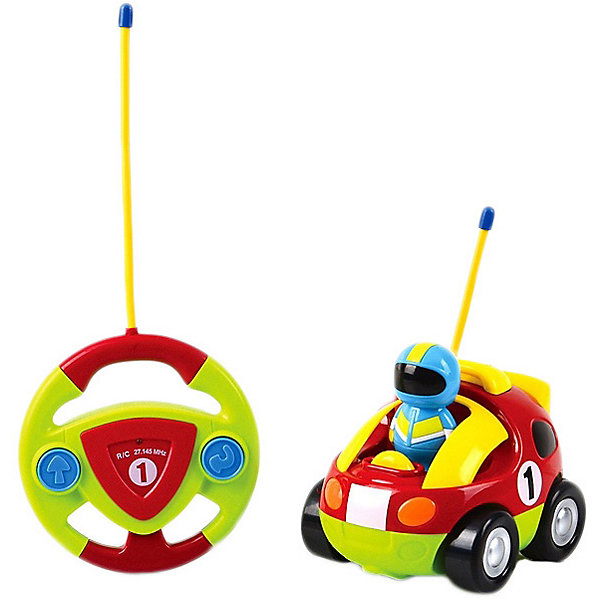 Машинка управляется дистанционно с помощью пульта в виде руля. Игрушка едет вперед, может поворачивать. Фигурка гонщика помещается на место водителя. Сделано из качественного пластика.