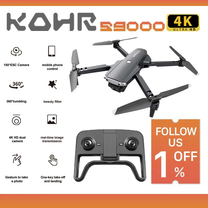 Радиоуправляемый Дрон KOHR S9000, складной Квадрокоптер с двойной камерой 4K, Wi-Fi, обход препятствий, оптический поток, позиционирование, игрушка ...