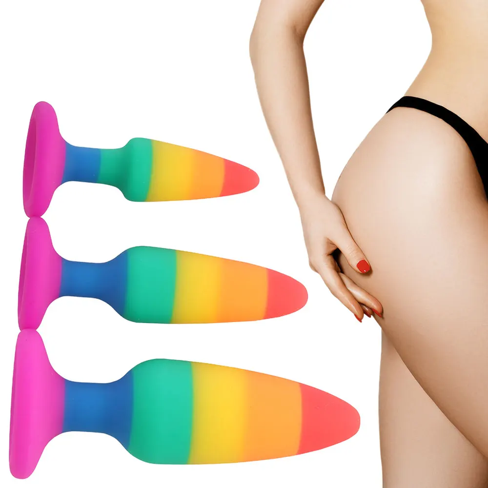 Радужная Анальная пробка, мягкая анальная пробка с мощной присоской, Женский инструмент для мастурбации, массажный стимулятор простаты, то...