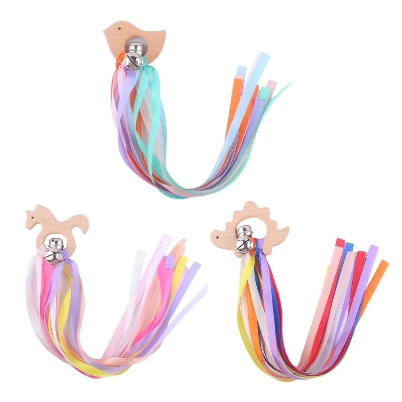 Радужная лента, деревянное кольцо в форме животного для прорезывания зубов, детский Прорезыватель с колокольчиками, погремушка, браслет дл...