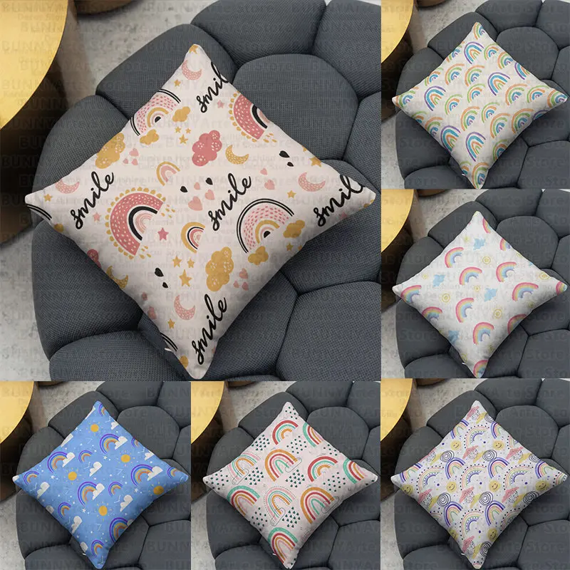Радужная маленькая свежая Подушка с принтом для украшения дома, квадратная подушка, подушка для офиса, мягкая удобная декоративная подушка