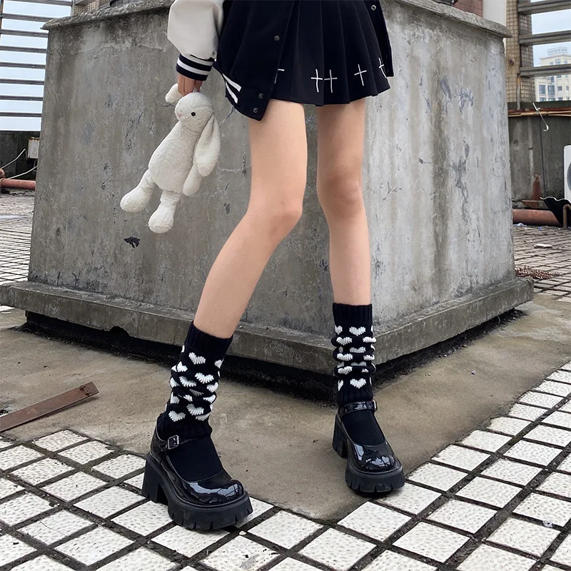 Радужные гетры JK для девочек, зимние теплые длинные носки, гетры для девочек в стиле "Лолита", теплые носки с бантом