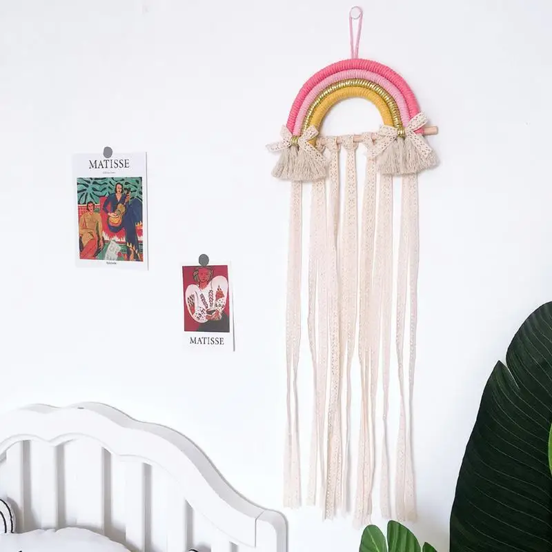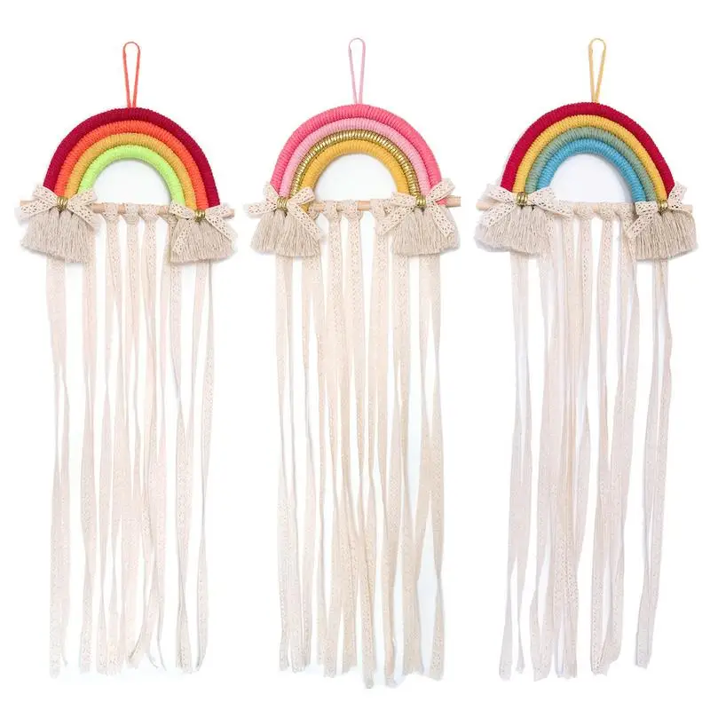 Радужный макраме, декор детской комнаты, настенные зажимы, органайзеры, Радужный ремень, подвеска для хранения