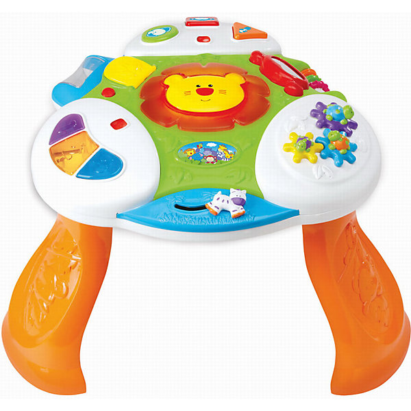 Развивающий Интерактивный стол от известного китайского бренда игрушек для детей Kiddieland (Киддилэнд) будет прекрасным подарком для ребенка. Веселый львенок с подсветкой не даст скучать даже непоседам. Крутящиеся шестеренки с черепашками понравятся малышу своими яркими панцирями. Безопасное зеркальце, барабан с цветными шариками, который крутится и гремит, бегущая лошадка и цветные колечки на перекладинке помогут развить восприятие цвета, звука, логическое мышление и моторику пальчиков. Цветные кнопочки расскажут как говорят нарисованные на них животные. Изготовленная из пластика высокого качества, разноцветная игрушка способствует развитию памяти, воображения, восприятия цвета и звука, моторики рук.