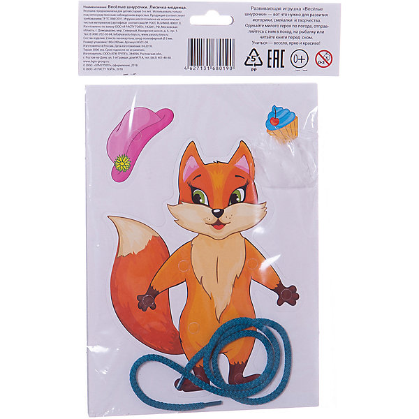 Игра Malamalama Весёлые шнурочки «Лисичка-модница» развивает мелкую моторику, воображение и логическое мышление. В распоряжении ребенка картонная лисичка, которую можно одевать и помещать ей в лапки разные предметы. Для этого нужно использовать шнурок и продевать его через отверстия в картинках.