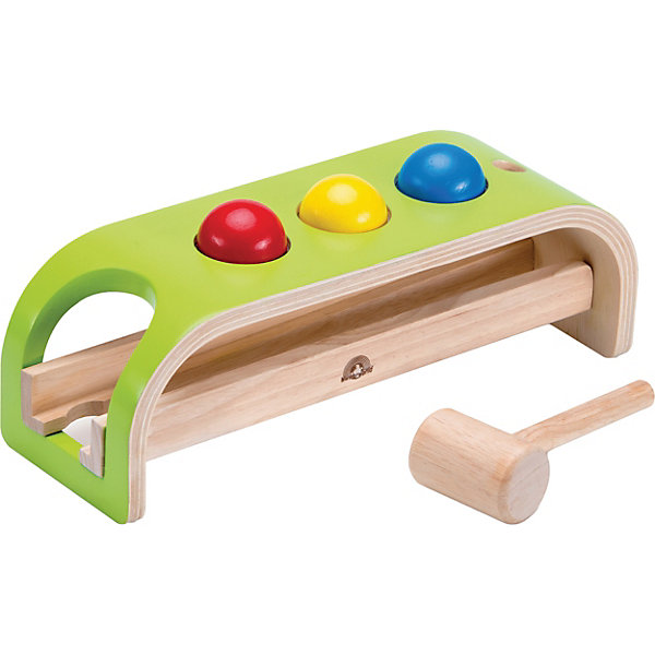 Игровой набор может надолго заинтересовать ребенка. Он представляет собой небольшую подставку с круглыми отверстиями, на которой размещены три разноцветных шара. Малышу необходимо молоточком из комплекта забить все шарики в отверстия. После этого шары упадут в специальный желоб. Занятия с игровым набором могут помочь развить координацию движений, мелкую моторику рук, а также способствуют изучению цветов.