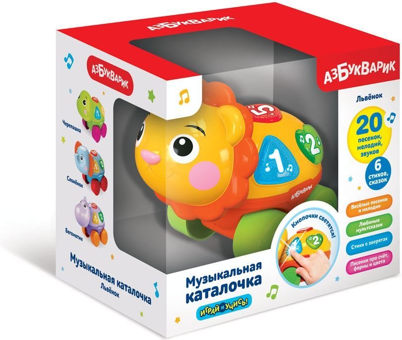Развивающая игрушка Азбукварик Музыкальная каталочка. Львенок 2644