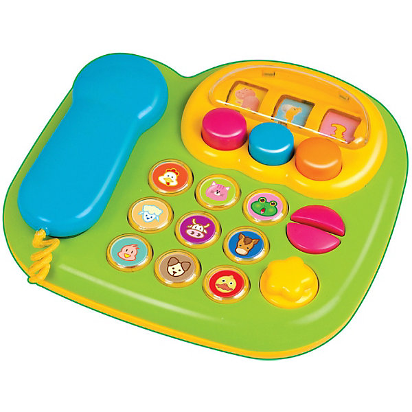 Музыкальный телефон с множеством разноцветных и крупных кнопок окрашен яркими красками. Направлен на развитие зрения, слуха и моторики. Игрушка изготовлена из качественного и безопасного материала.