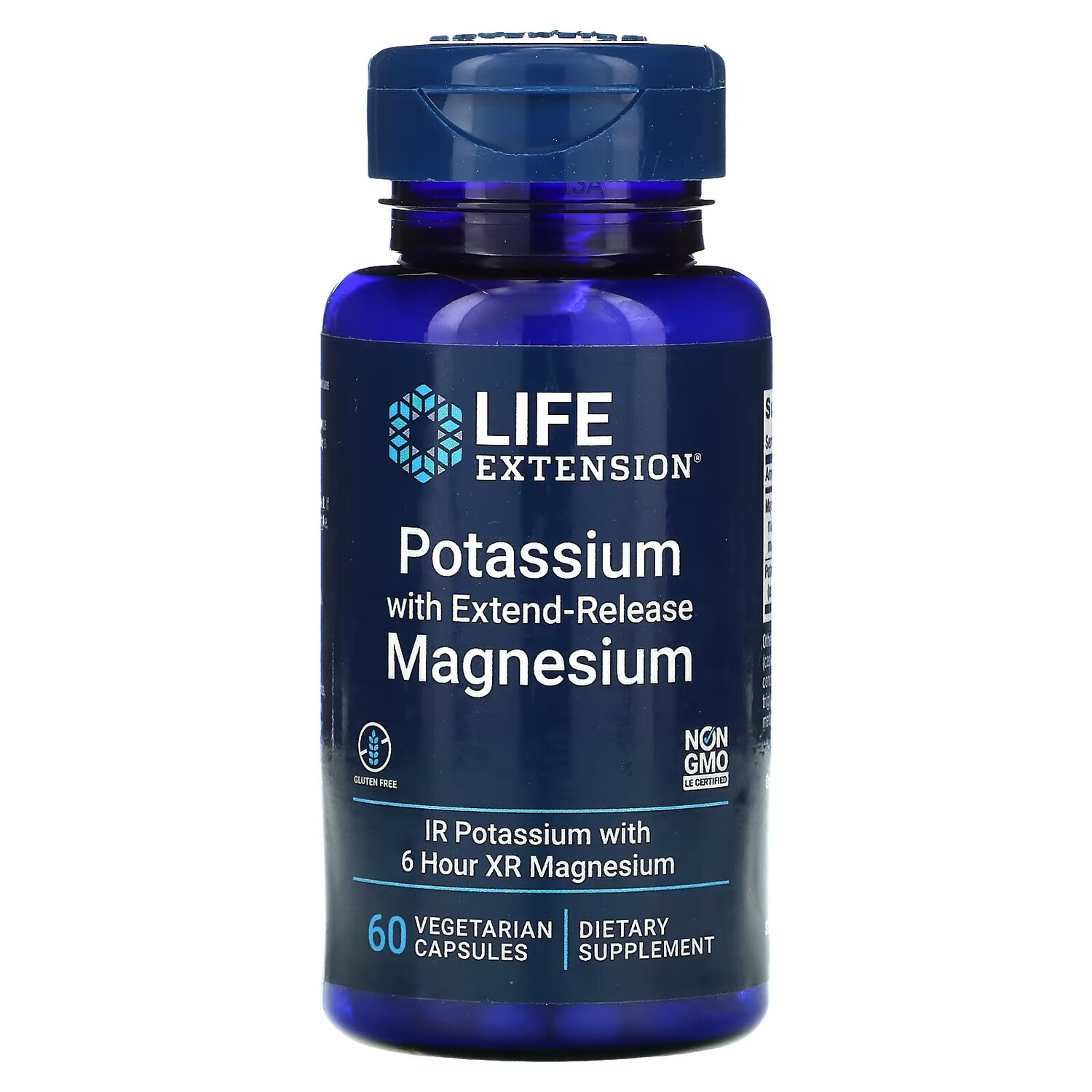 Life Extension, калий с магнием пролонгированного действия, 60 вегетарианских капсул