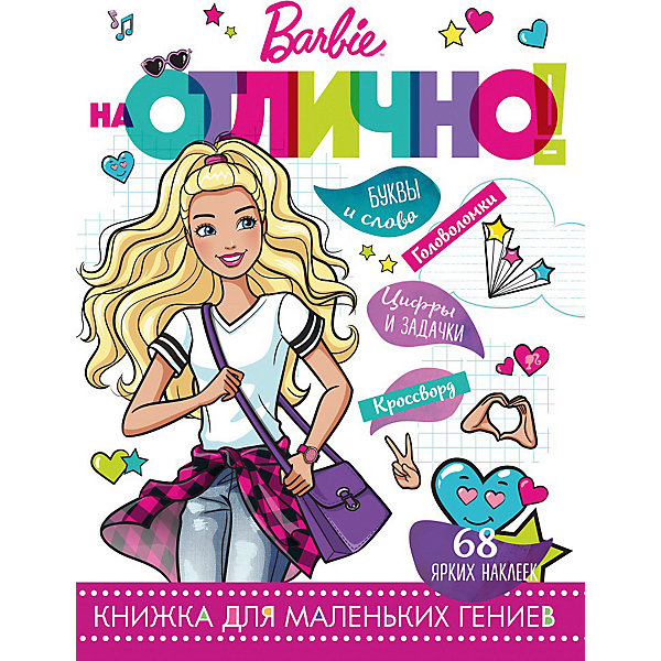 Издание оформлено в стиле популярного бренда кукол. На разворотах найдутся кроссворды, головоломки, раскраски и игры, а также красочные наклейки с персонажами. Задания способствуют развитию внимания, логического мышления, памяти и речи, тренировке счета и первого письма.