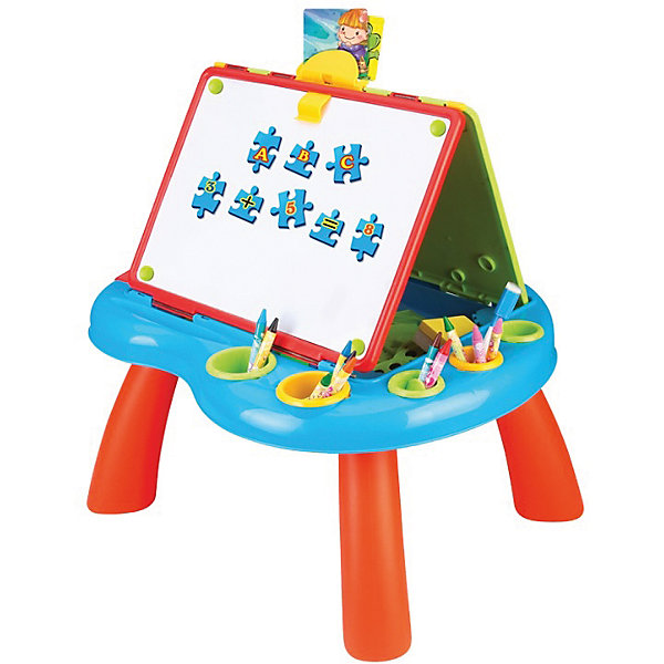 • в комплекте: стол, 2 доски, магнитные буквы и цифры, 6 карточек с картинками, линейка, трафареты, 2 мелка, 2 клипсы, 4 наклейки, губка, стаканчики для канцелярии;