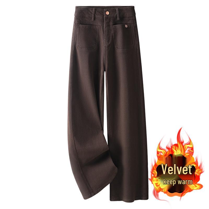 Women s 2024 Khaki Fleece-Lined Jeans: Autumn/Winter Thickened Narrow, Wide, or Straight-Leg Styles S