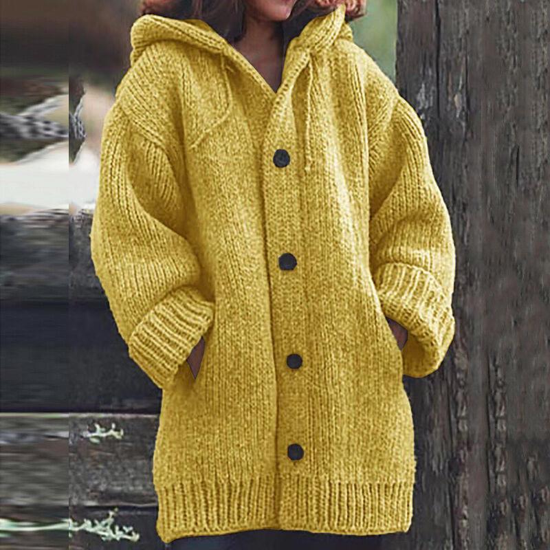 Размер Женский Плюс Кардиганы Вязаные с Капюшоном Джемпер Свитер Зимнее Пальто Топы Куртка 5XL жёлтый