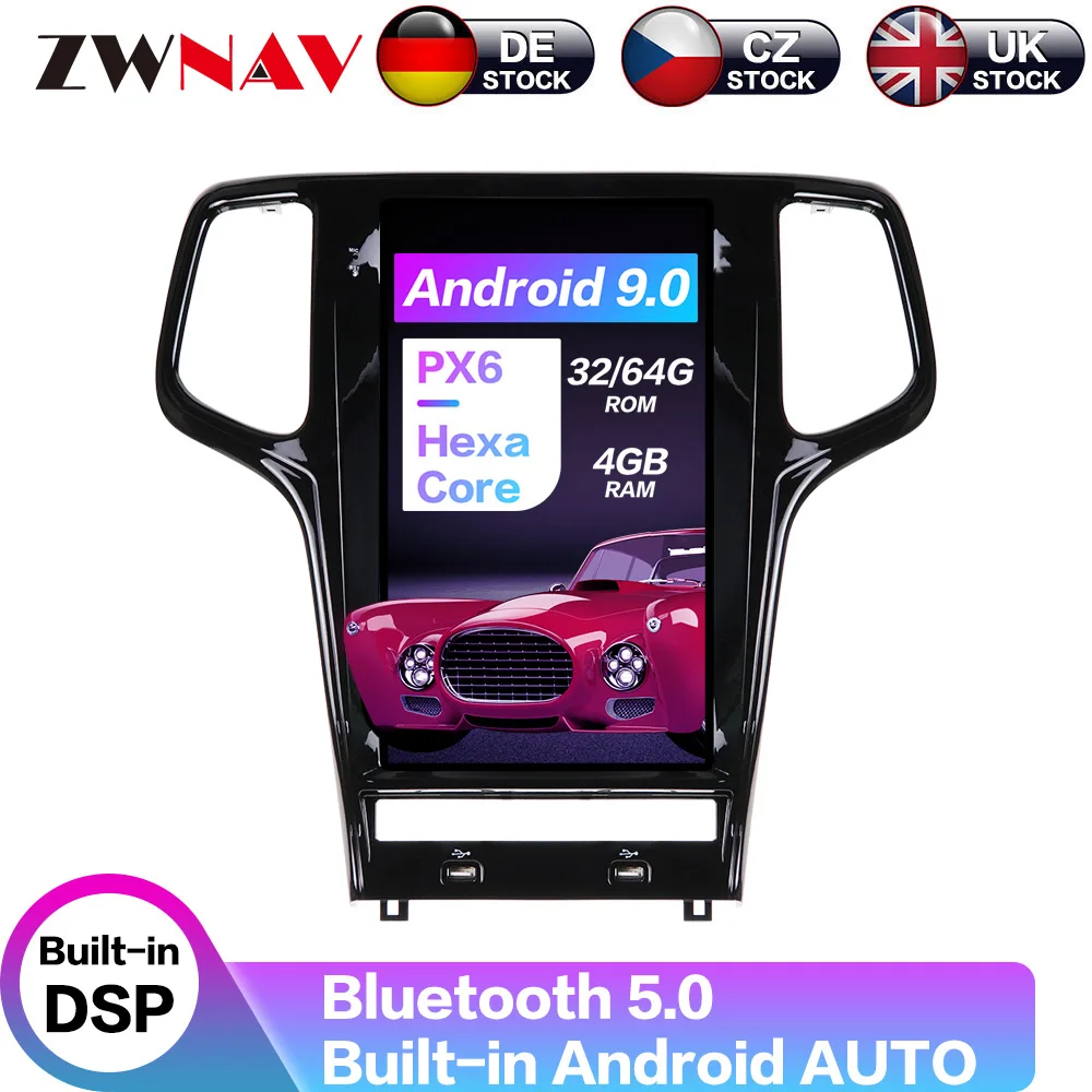 13.6" Android 9 PX6 64+4G Tesla With DSP Carplay Car Multimedia Player For Jeep Grand Cherokee 2010 - 2019 GPS Navigation