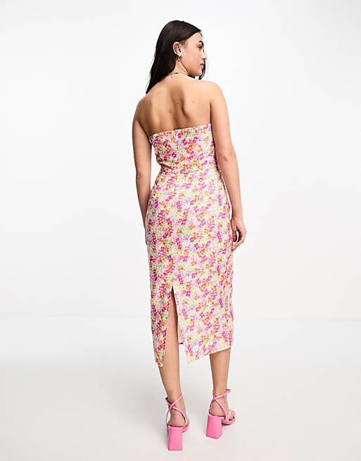 Разноцветное льняное платье-бандо с цветочным принтом The Frolic