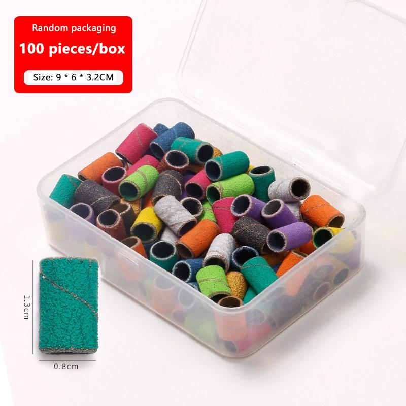 Разноцветные Смешанные Шлифовальные Кольца для Ногтей Зернистость Электрическая Маникюрная Дрель Шлифовальные Головки Снятие УФ Гель-лака Инструменты для Эксфолиации 100Pcs