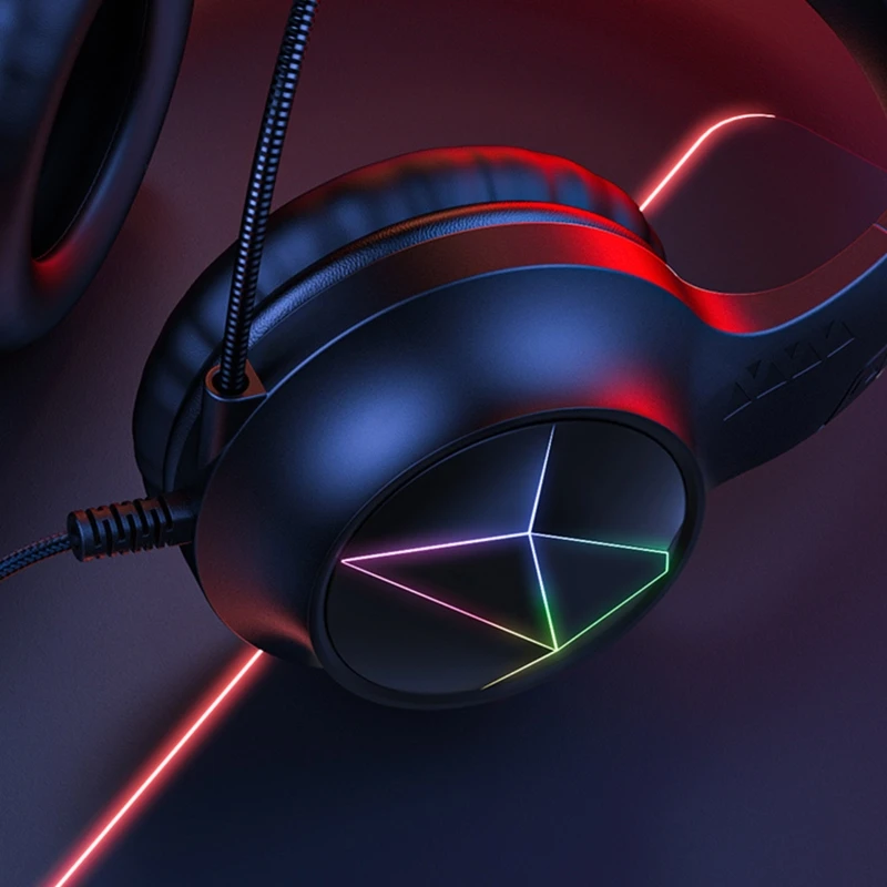 Разноцветные наушники с RGB-подсветкой, игровая гарнитура, наушники, премиум-наушники со всенаправленным микрофоном для ПК, ноутбука, шокиру...