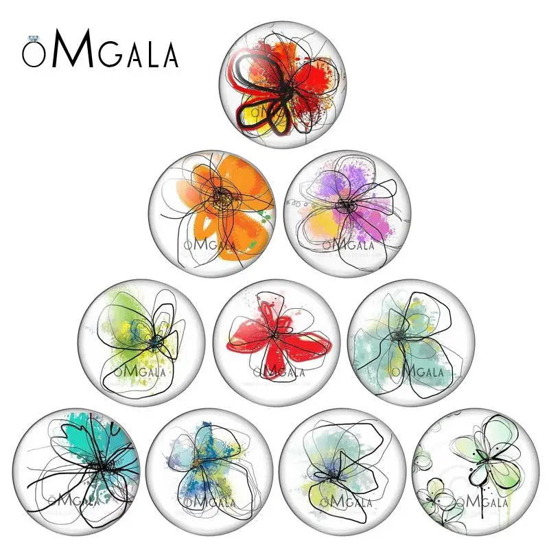 Смешанные цвета, художественный рисунок, цветы, 12 мм/14 мм/16 мм/18 мм/20 мм/25 мм/30 мм, круглый фотостекло, кабошон, демо, плоская задняя часть, выводы