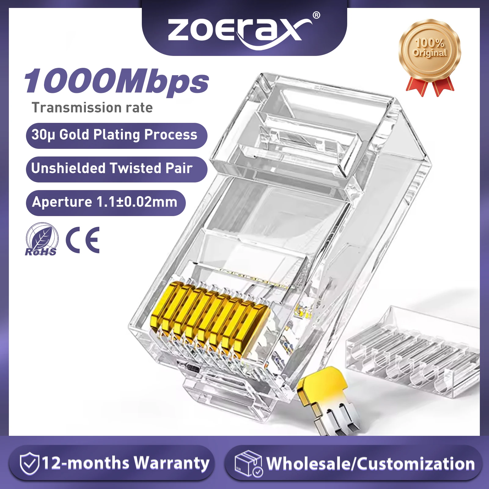 Разъемы ZoeRax RJ45 Cat6, 2 шт., 3-контактные модульные штекеры 8P8C для витой пары 23AWG и стандартных кабелей