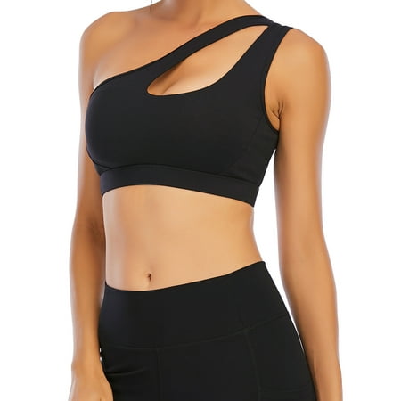 SHCKE Women Sexy One Shoulder Cut Out Sports Bra Workout Tops Yoga Activewear Medium Support for Gym Fitness