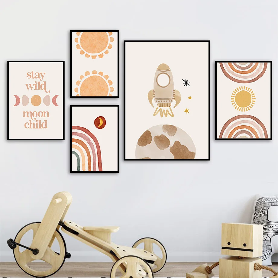 Ракета земля лиса Луна Радуга луна мультфильм настенная живопись холст скандинавские постеры и принты настенные картины декор для детской ...