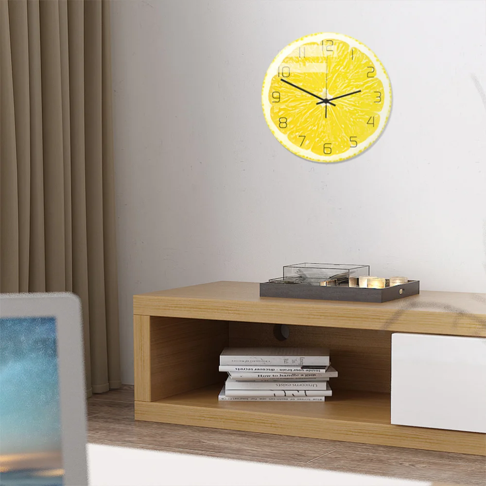 Creative Acrylic Clock Orange Pattern UV Printed Wall Clock Household Bedroom Hanging Bar Decor without Battery
