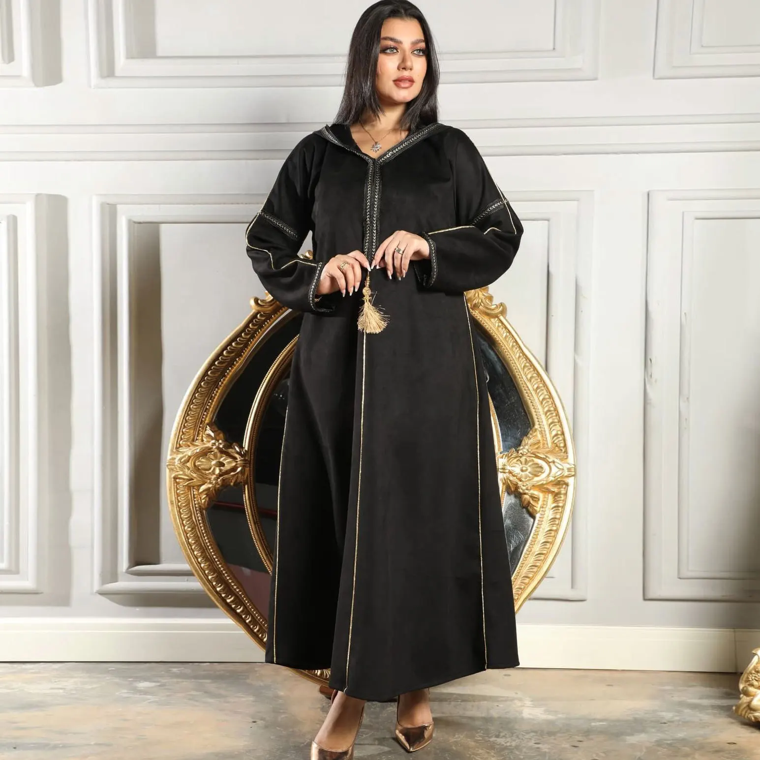 Рамадан зимние черные замшевые Abaya Дубай турецкие Abayas для раннего мусульманского платья Djellaba женские мусульманские платья