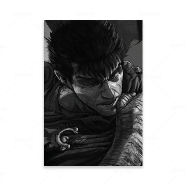 Рамка из цельного дерева, черно-белая манга, аниме Миура Кентаро, Берсерк, постер и принт, настенная живопись на холсте, настенная картина, декор для гостиной 15*20cm(with frame)