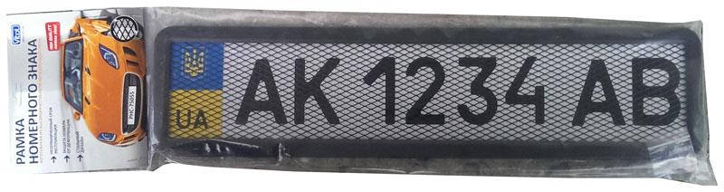 Рамка под номерной знак черная с сеткой 75055Рамка под номер нержавейка черная с сеткой