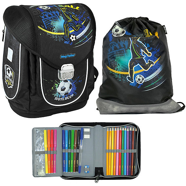 Ранец школьный Ezzy III, Football с наполнением, Черный