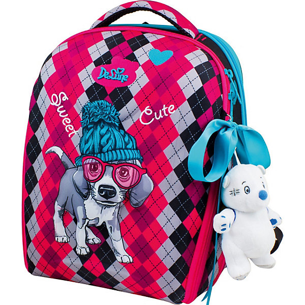 Ранец DeLune 7mini, мешок, жесткий пенал, мишка, ленточка, Rosa/grau