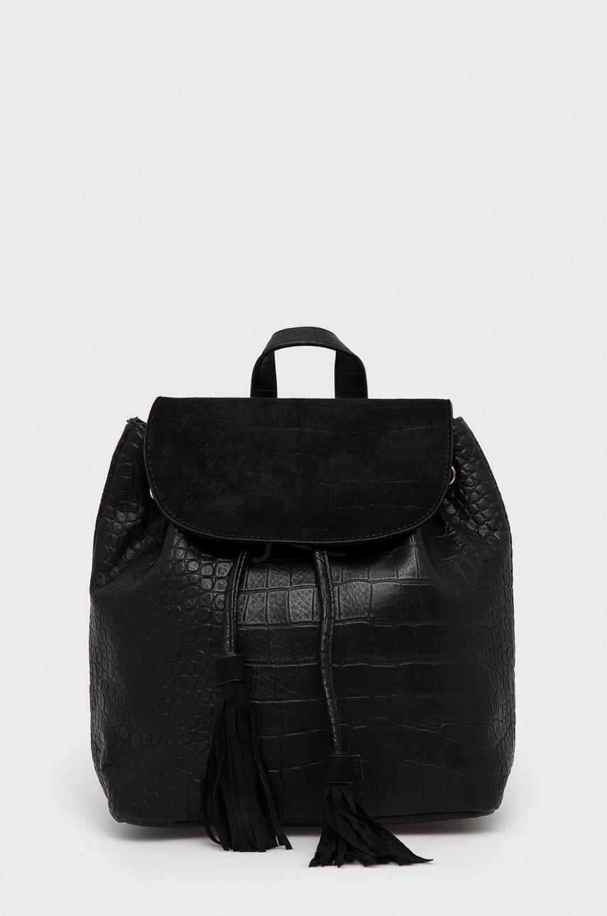 Раница Answear Lab дамска в черно малък размер с изчистен дизайн, Черен