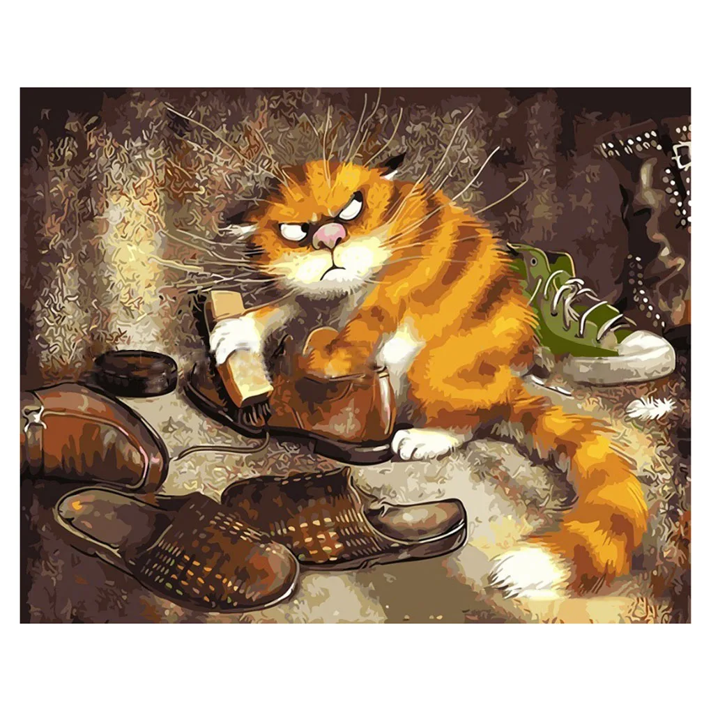 Раскраска маслом по номерам «сделай сам», льняная ткань для ручной работы с животными, для домашнего декора гостиной