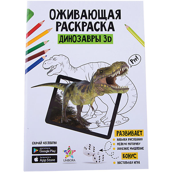 Раскраску с дополненной реальностью «Динозавры», 11 трехмерных моделей, Unibora (Юнибора) можно купить в нашем интернет-магазине.
