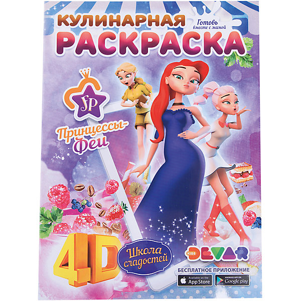 Живая 4D раскраска Devar «Принцессы-Феи Школа сладостей» - это раскраска и кулинарная книга для маленьких хозяек. В ней собрано 7 простых рецептов сладких блюд, которые девочка сможет приготовить при минимальной помощи взрослых.