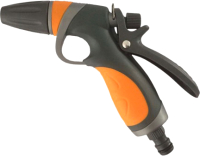 Инновационная клавиша подачи воды с переключателем-фиксатором нажатого положения. 5 вариантов формы потока от широкого конуса до узкой струи или тумана. Долговечное съемное "сито". Регулятор напора воды. Пистолет изготовлен из высококачественного пластика ABS и протестирован на пневматическом оборудовании.