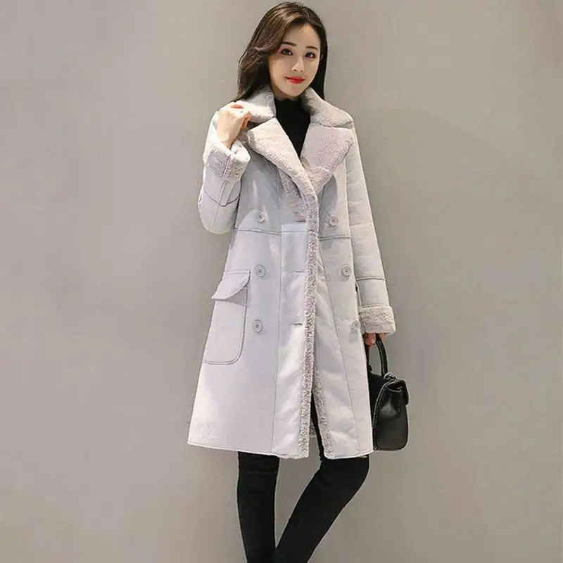 2021 Ladies Suede Fur OverCoat Fashion Thick Faux Sheepskin Long Coat Women Solid Warm Winter Windbreaker New Fashion Clothing