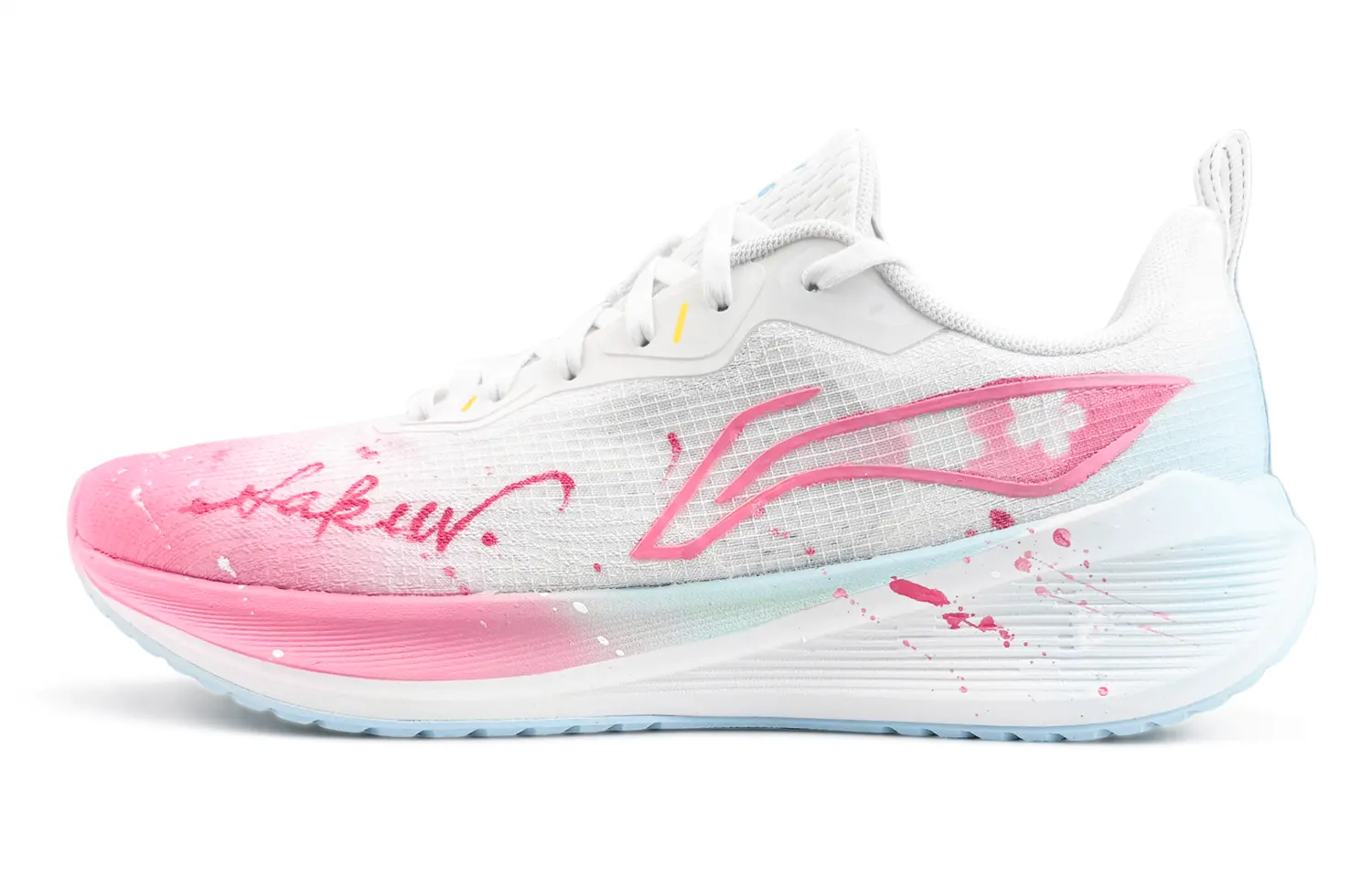 LINING Износостойкие, дышащие, легкие, низкие кроссовки Wuyue для повседневного бега, мужские, розовые, белые