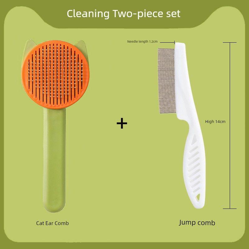 Расческа для питомцев Кошачьи ушки Сочетание цветов Самоочищающаяся расческа Плавающий волос Липкое удаление волос Кошачья шерсть Нейтральная расческа Игольчатая расческа Товары для питомцев Cat ear comb * 1 + flea comb * 1