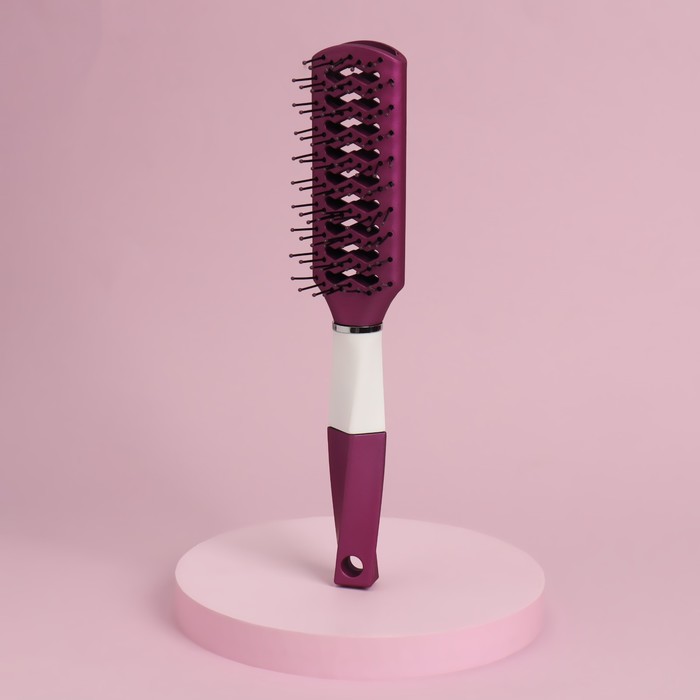 Расчёска массажная, прорезиненная ручка, вентилируемая, 4,2 × 23 см, цвет фиолетовый/белый
